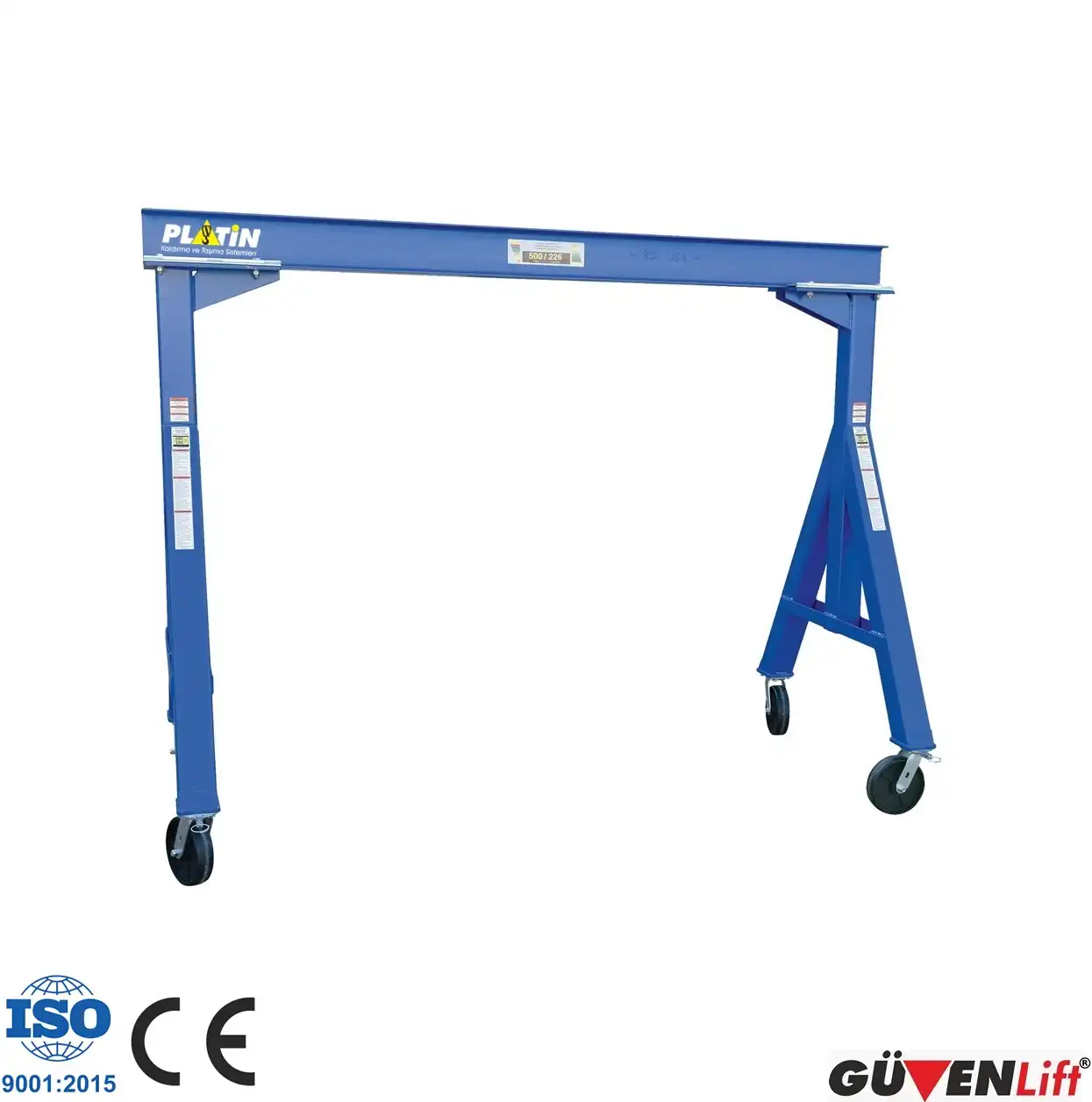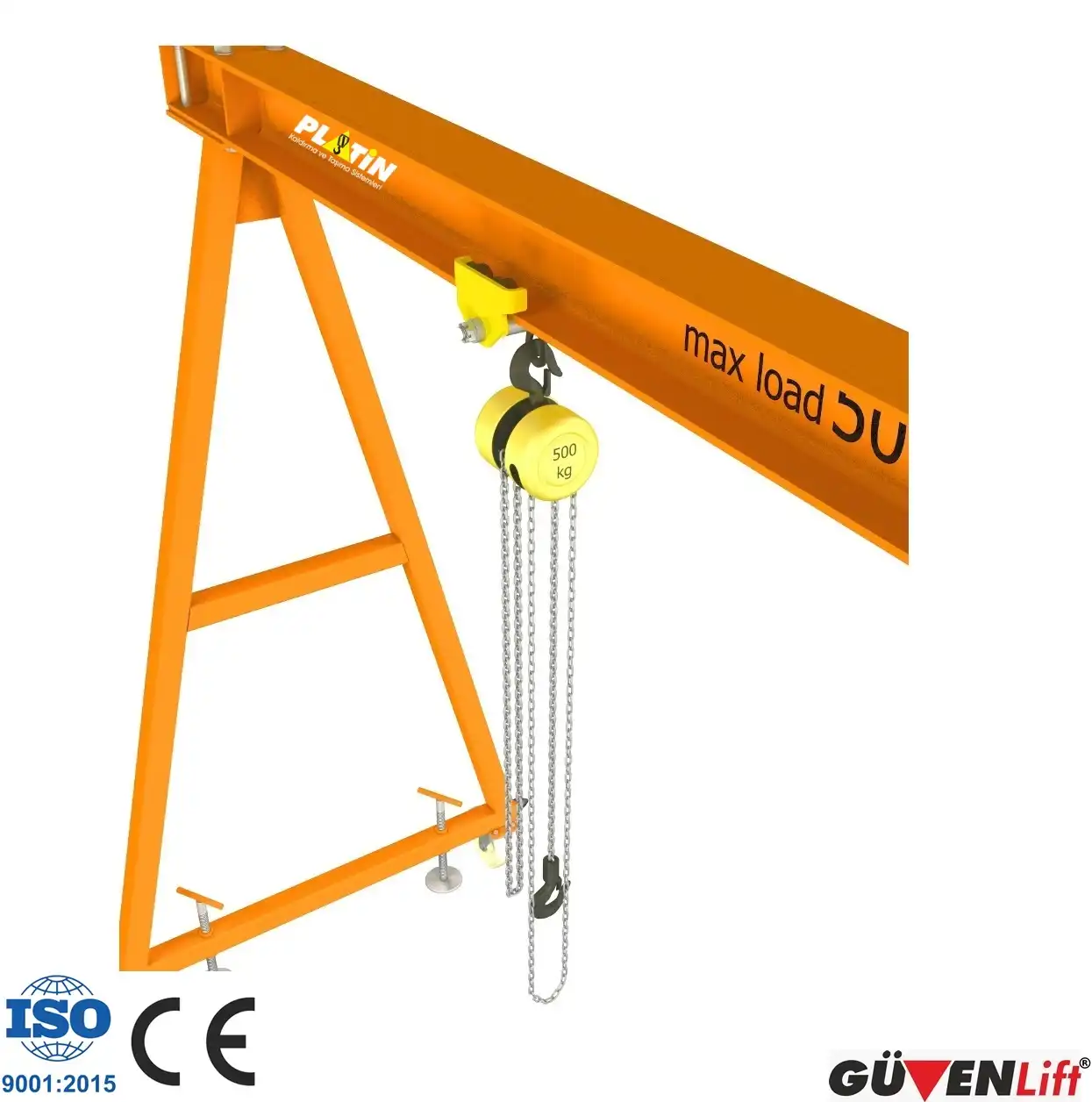 Ürün parça ambalajlarını açtıktan sonra parçaları eşleştiriniz. Eşleştirilen parçaları dikkatle birbirine monte ediniz ve ürün kurulumu gerçekleştikten sonra caraskalları kurunuz. Kurulum esnasında yatık olarak kurulumu gerçekleştiriniz ve ürünü forklift ya da caraskal ile dik konuma getiriniz. Önemli Not: Portal vinç yürütme tekerleklerini ürün kurulumu bittikten sonra monte ediniz. Aksi takdirde kaldırma esnasında kasılma yaparak arızalanabilir.