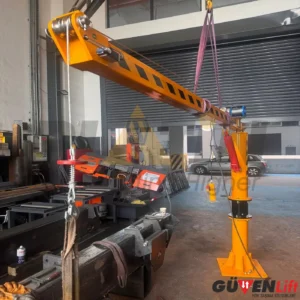 Kırmalı Pergel Yapısı: Katlanabilir pergel kolu, vinçin daha kompakt bir hale gelmesini sağlayarak dar alanlarda kullanımı kolaylaştırır ve depolama ihtiyacını azaltır.