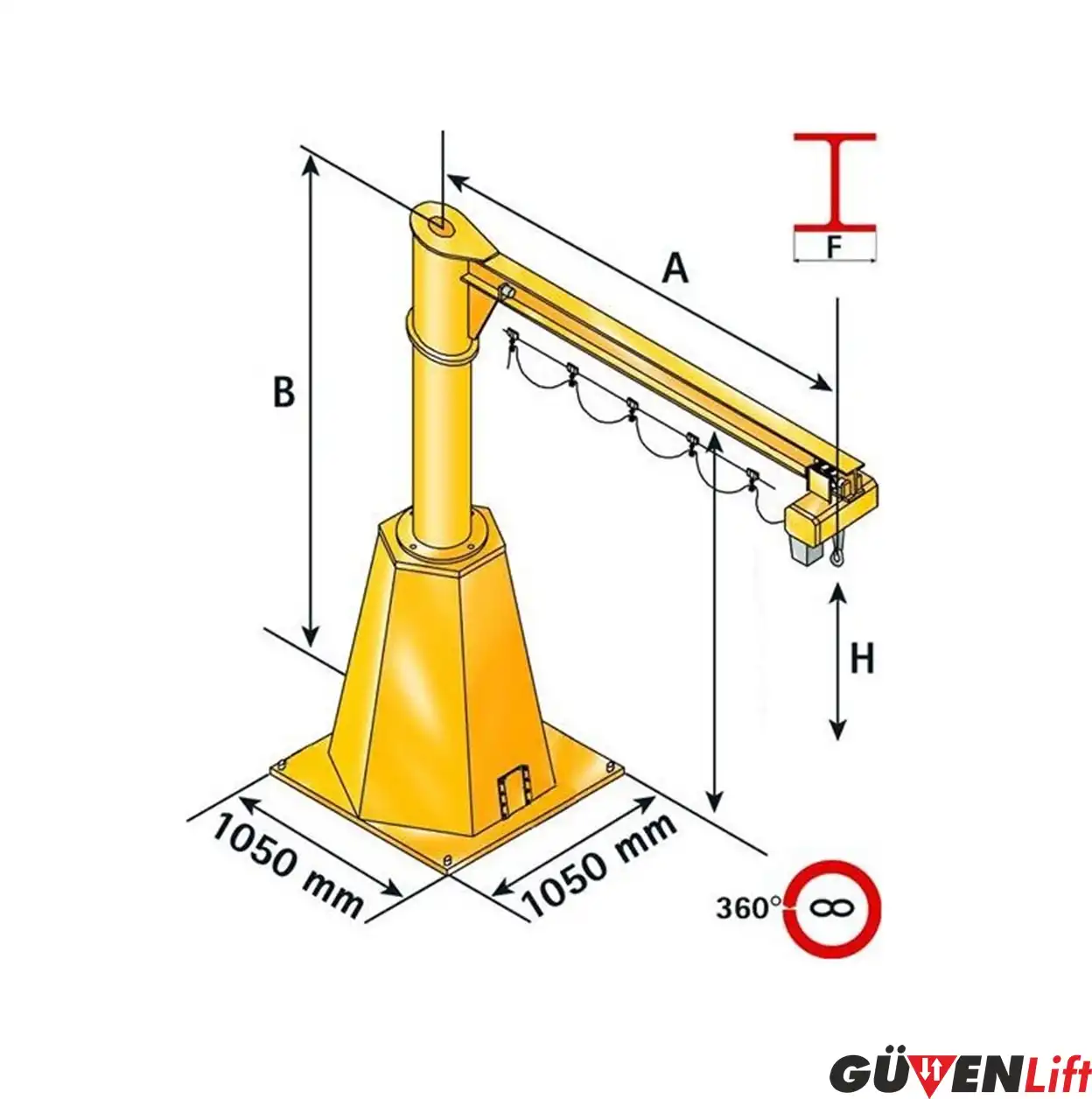 Maksimum 1 ton kapasiteye ve 3 metre kol uzunluğuna göre imalat yapılabiliyor.