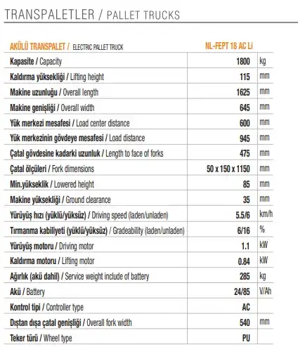 Netlift Akülü Transpalet Li-İon