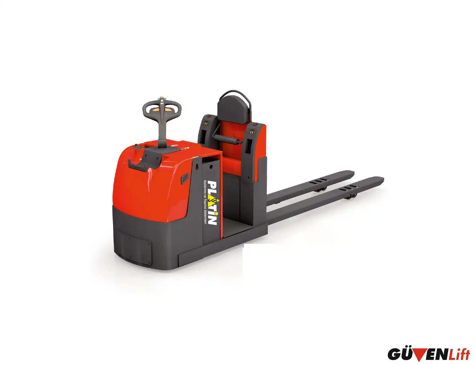 Ergonomik Tasarım: Transpalet, operatörün konforunu ve ergonomisini ön planda tutan bir tasarıma sahiptir. Ayarlanabilir direksiyon kolonu, kolay erişilebilir kontroller ve ergonomik tutma kolları, kullanım kolaylığı sağlar.