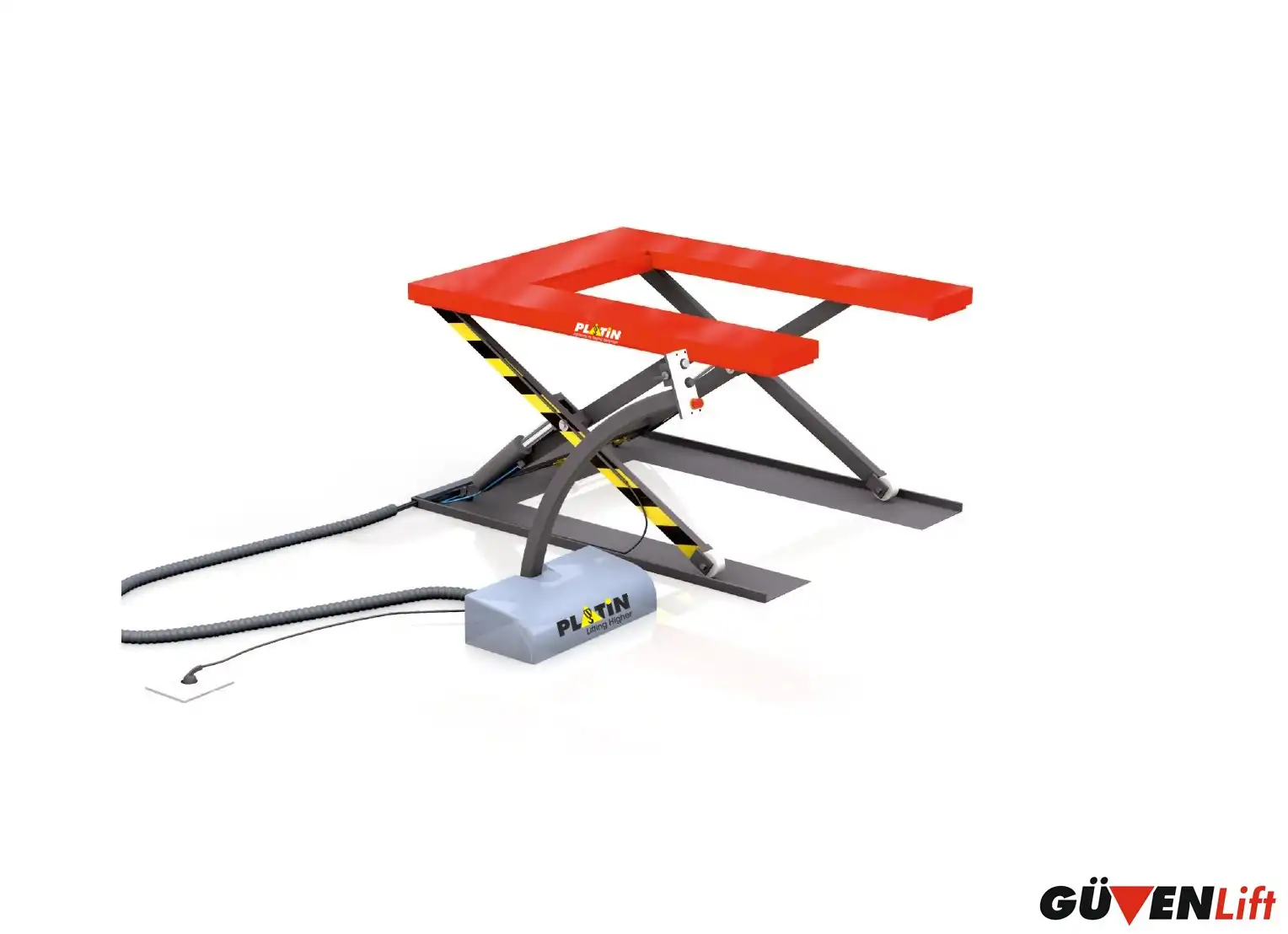 U tipi platformlar yere yakındır ve transpalet ile arasına girerek paletleri çok rahat bir şekilde platformun üstüne bırakabilirsiniz. Platform kalkarken palet platformun üstünde ve transpalet ise yerde boşta kalır.